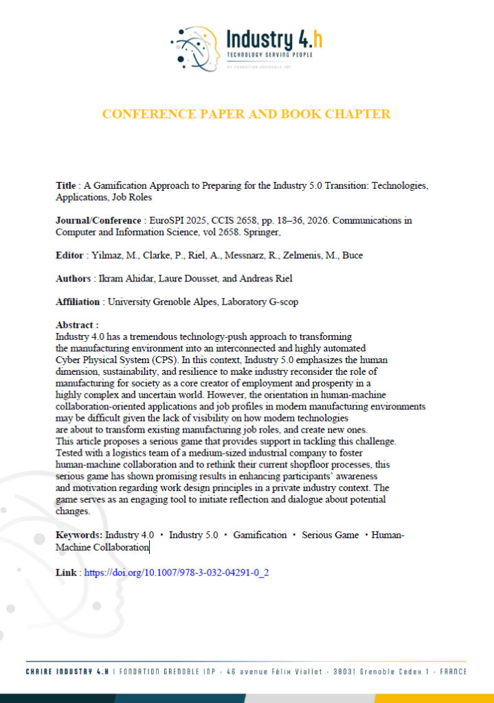 Dans ce cadre, la Chaire Industry 4.h, lancée en avril 2022, vise à répondre aux problématiques humaines et managériales générées par la transition vers l’industrie du futur, soutenable et au service de la société.